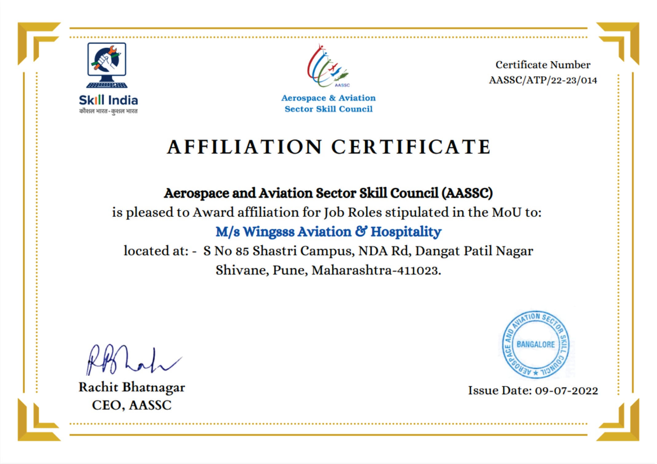 Wingsss Aviation & Hospitality is a renowned institute with a legacy of 20+ years, dedicated to delivering world-class education and training in aviation. As Maharashtra’s first institute with state-of-the-art infrastructure, we take pride in offering industry-aligned programs led by expert faculty to shape future aviation professionals.